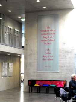 Die ehemalige Samenbank wurde aus Anlass der Eröffnungsfeier der Kunstschule bei der Galerie Stihl Waiblingen neu gestaltet. Die etliche Jahre alten Samen und Körner mussten entfernt werden. Anschließend kam roter Satin in die Felder.
