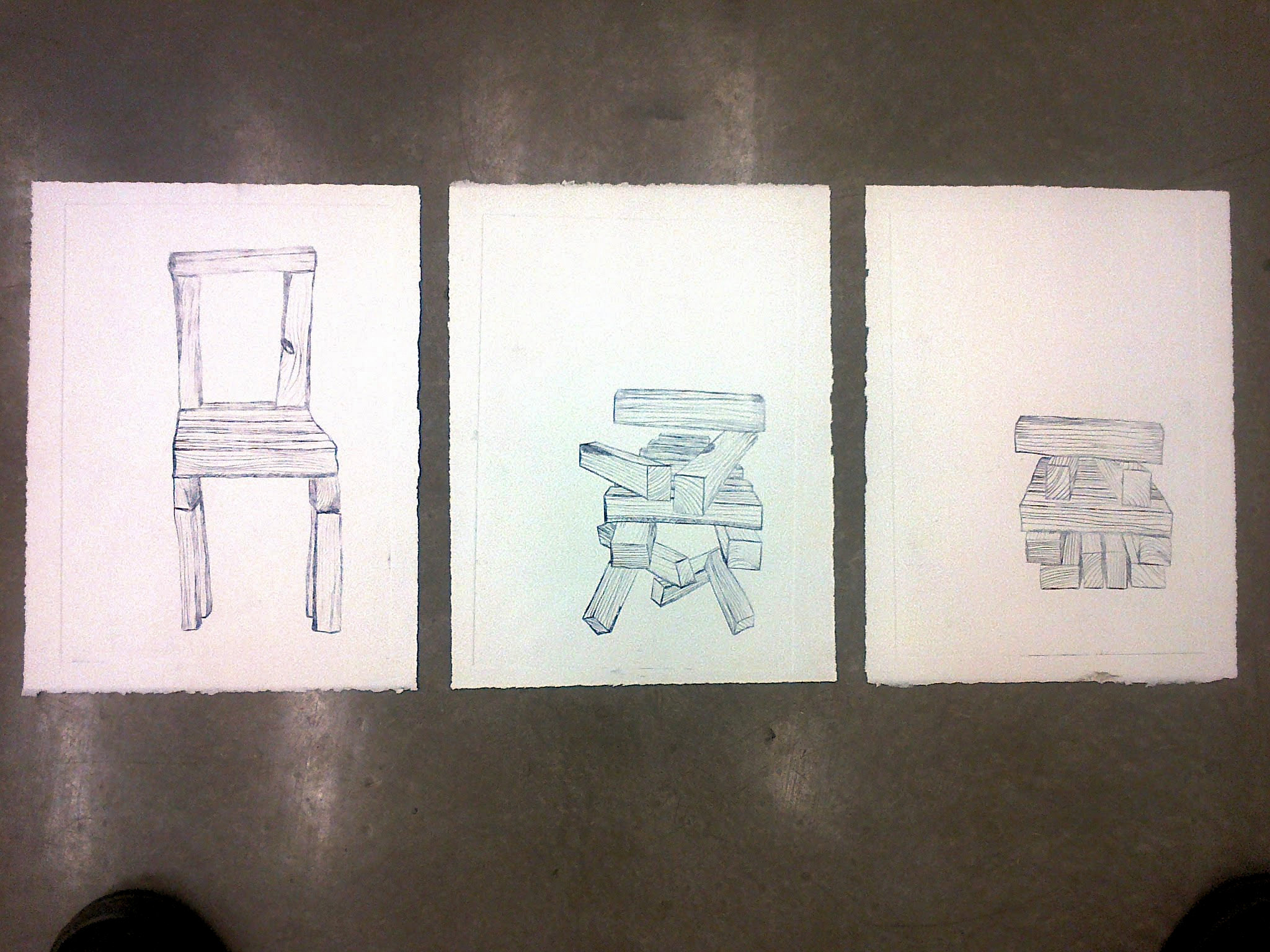 Stichdrucke, Kaltnadelradierungen auf Rhenalonplatten, nach der Vorlage einer Arbeit aus Holzscheiten von Thomas.