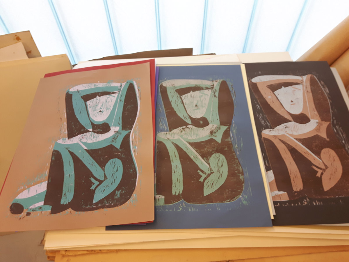 Sitting Caryatid ist eine Reihe von Holzdrucken, die mit einer